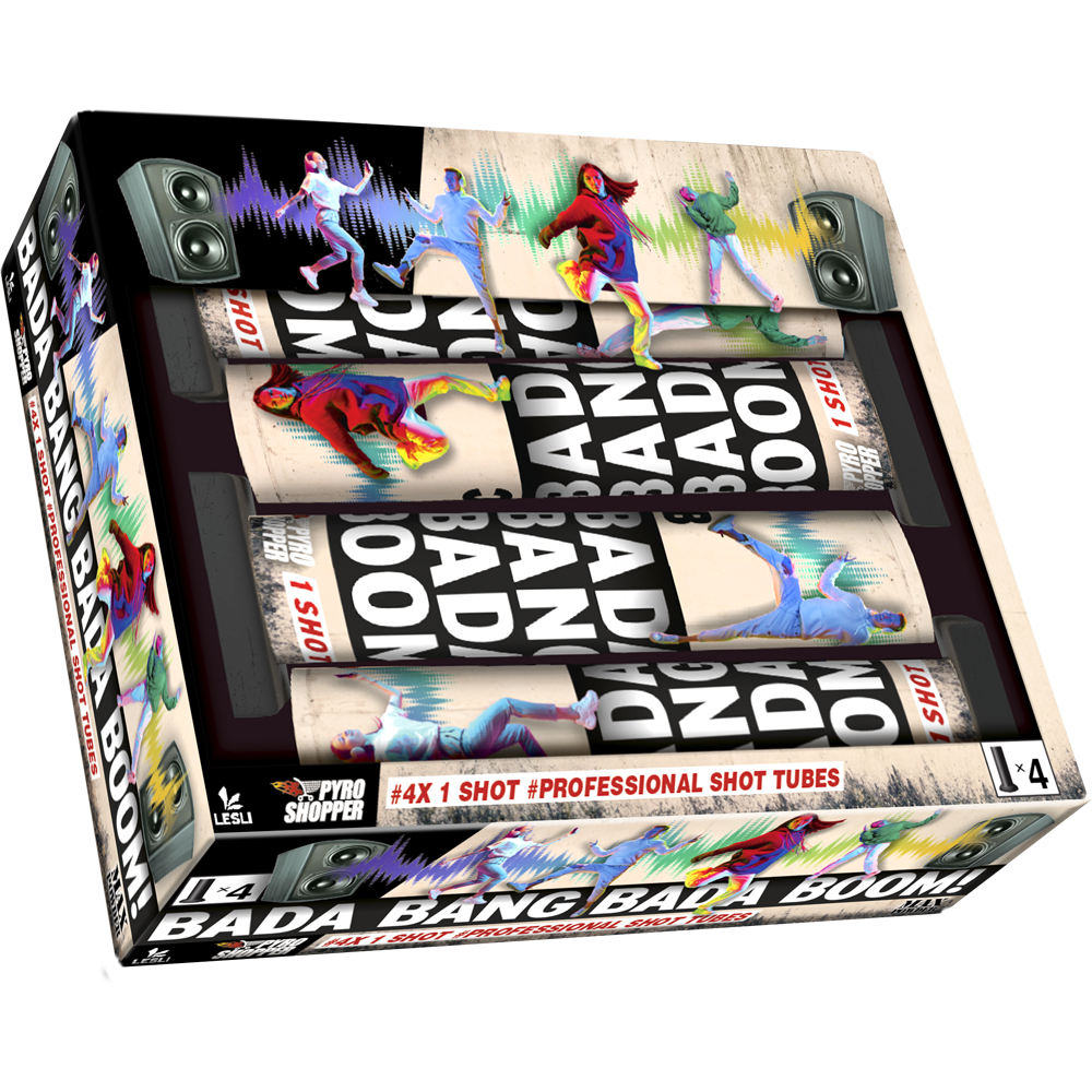 Bada Bang Bada Boom! n nGrote, enkele shots met grote effecten. Beter en goedkoper dan een raket! n nKaliber 30 nAantal schoten 4x 1 nBrand duur 5 Seconden Bada Bang Bada Boom! Goedkoop vuurwerk kopen bij Vuurwerkwinkel Antwerpen