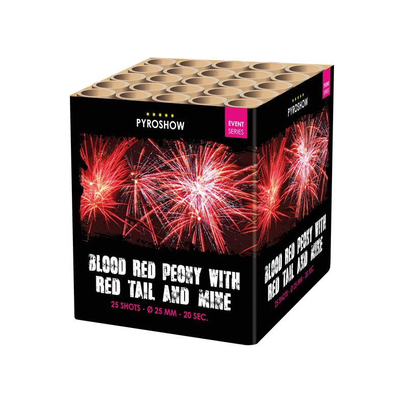 Blood Red Peony w.Red Tail and Mine Goedkoop vuurwerk kopen bij Vuurwerkwinkel Antwerpen