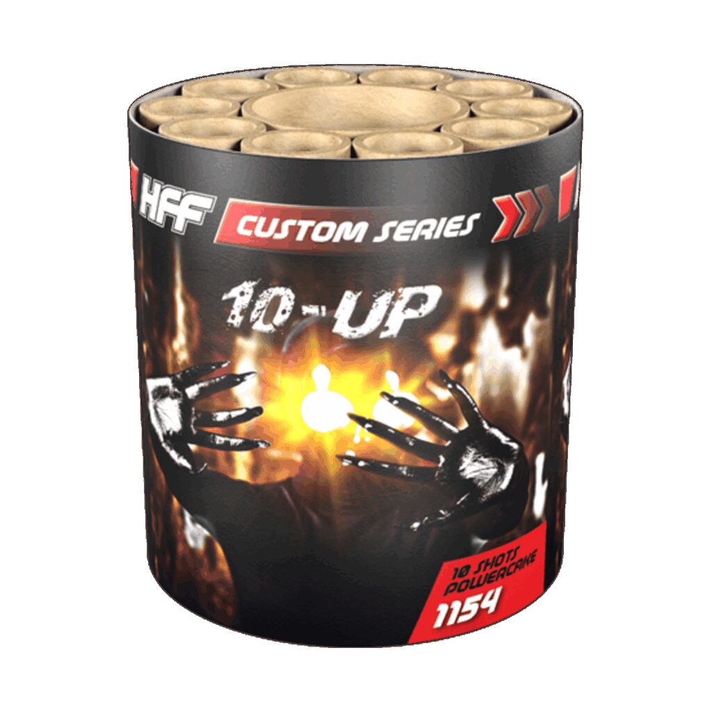 n n10 schots cake met mooie gouden effecten zoals je kunt verwachten van de HFF lijn! n n Lesli Vuurwerk 10-Up Goedkoop vuurwerk kopen bij Vuurwerkwinkel Antwerpen