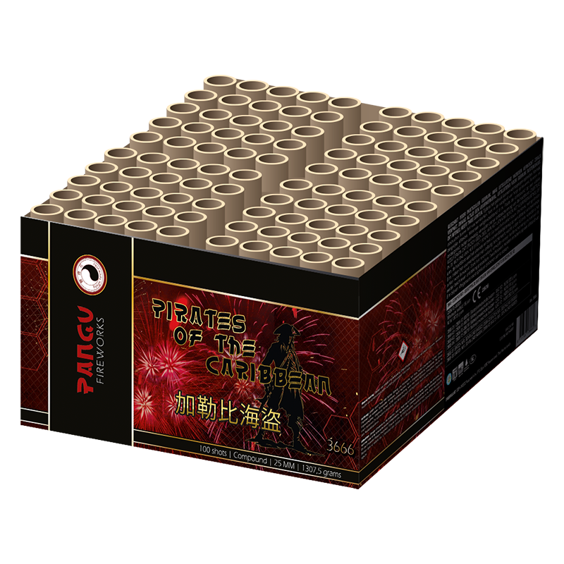 Pirates of the Caribbean 100 shots 25mm Goedkoop vuurwerk kopen bij Vuurwerkwinkel Antwerpen